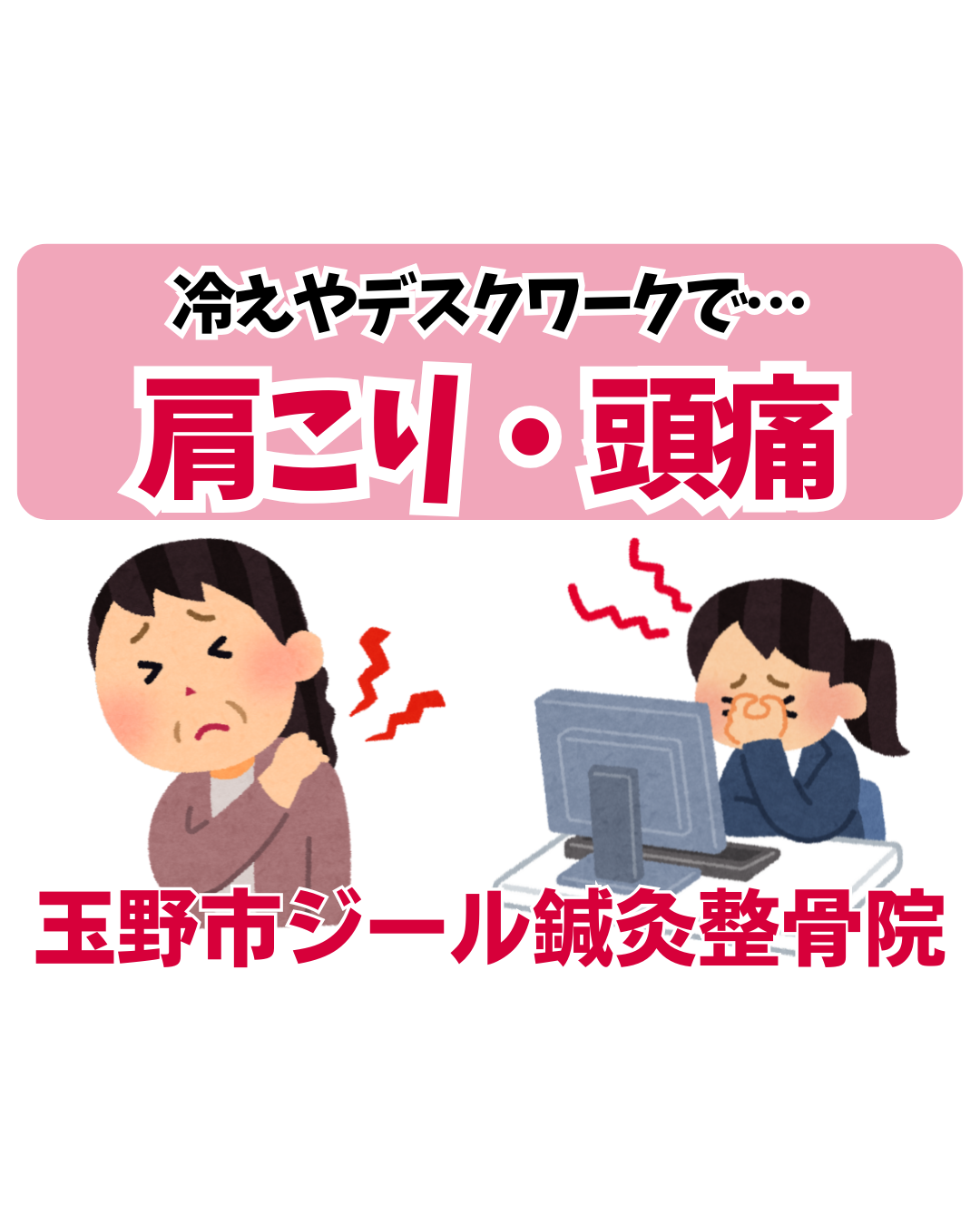 玉野市田井のジール鍼灸整骨院では、季節の冷えやデスクワークによる姿勢不良からくる肩こり・頭痛・首こりのご相談が増えています。