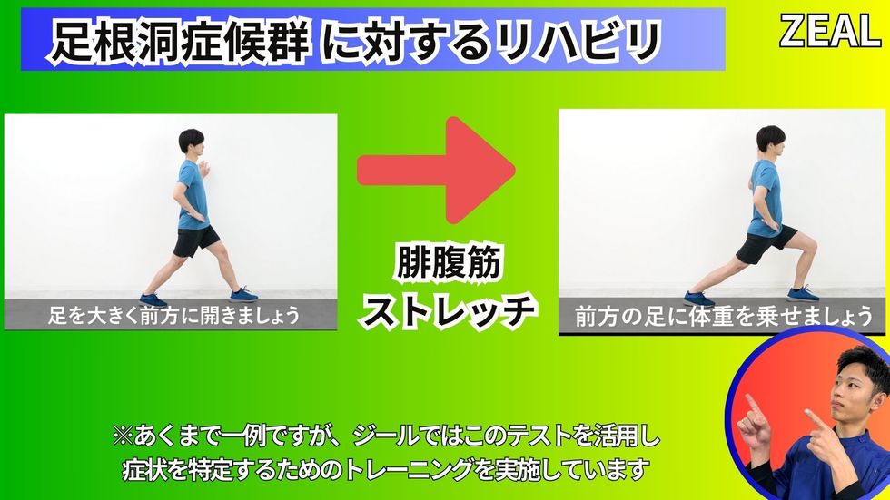 足根洞症候群の施術方針❶▶︎筋肉の緊張緩和と柔軟性向上で下腿三頭筋(ふくらはぎ)の筋肉をリリースし、さらに母趾外転筋の柔軟性を高めることを目指して施術を行います。